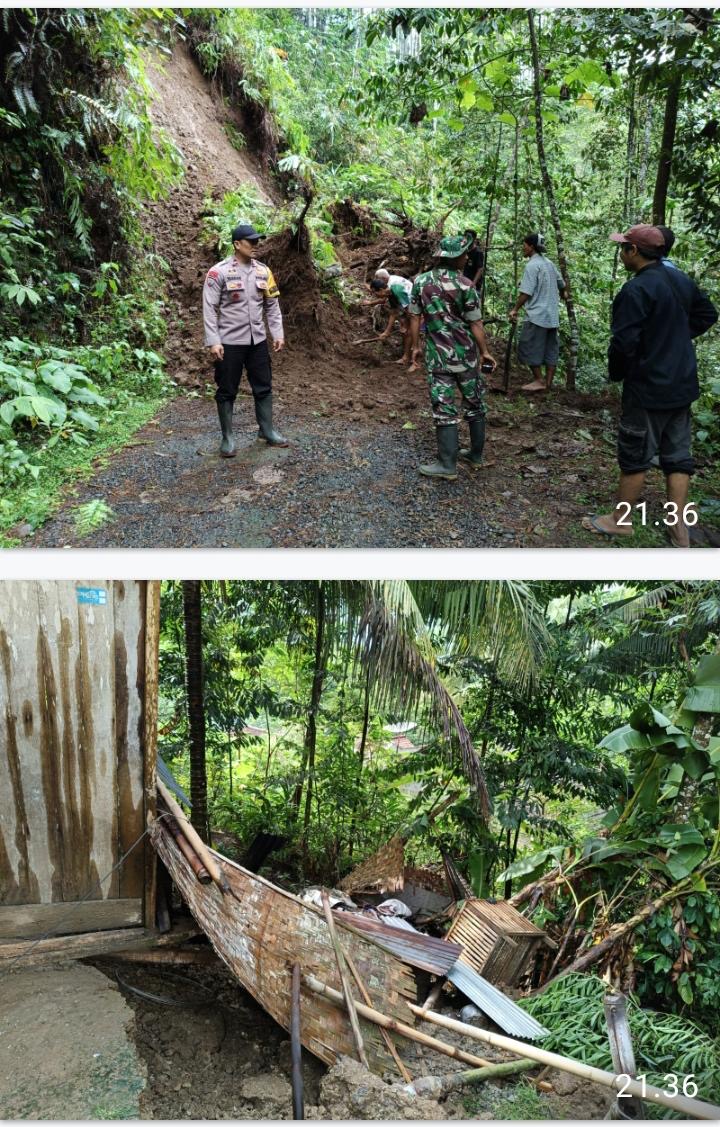 Polsek Tambak Polresta Banyumas Evakuasi Longsor Di Desa Watuagung, Kerugian Mencapai Puluhan Juta Rupiah.