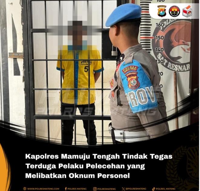 (265 Views) August 4, 2025 2:20 am | Published by pimred | No commentMamuju Tengah – SuaraJatim.News – Kapolres Mamuju Tengah, AKBP Hengky Kristano Abadi, S.H., S.I.K., mengambil langkah tegas dan cepat menanggapi laporan dugaan pelecehan yang diduga melibatkan oknum personel Polres Mamuju Tengah berinisial S.