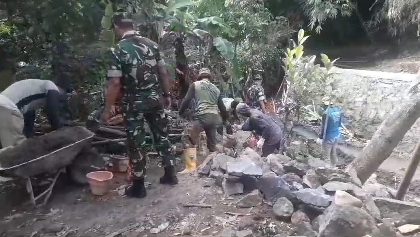 (499 Views) February 5, 2025 3:17 pm | Published by pimred | No commentSragen – SuaraJatim.News – Ketahanan pangan menjadi fokus utama pembangunan di berbagai daerah. Salah satu upaya untuk menunjang ketahanan pangan adalah dengan menjaga kelancaran irigasi sawah. Sertu Joko Priyanto Babinsa Desa Mojorejo beserta dua orang anggota Koramil 02/Karangmalang Kodim 0725/Sragen, aktif berpartisipasi dalam pembangunan talud irigasi sawah melalui kegiatan kerja bakti bersama warga di Dk.Panji Rt. 18 Desa Mojorejo Kecamatan Karangmalang, Rabu 05 Februari 2025.