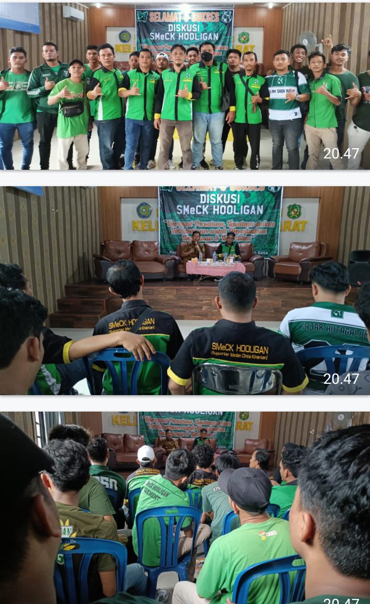 (1059 Views) October 11, 2023 11:36 pm | Published by pimred | No commentMedan – SuaraJatim.News – Sambut tahapan Pemilihan Umum (Pemilu) Tahun 2024, keluarga besar SMeCK (Suporter Medan Cinta Kinantan) HOOLIGAN gelar diskusi Kebhinekaan di Kantor Kelurahan Teladan Barat, No.19, Jalan Sisingamangaraja Gang Mesjid, Kelurahan Teladan Barat, Kecamatan Medan Kota, Kota Medan, Selasa 10 Oktober 2023 sore.