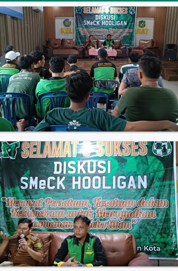 Sementara, Lurah Kecamatan Teladan Barat, Juni Hardian, yang juga turut bertindak sebagai pemateri pada diskusi itu, mengajak seluruh Kader SMeCK HOOLIGAN untuk menjadi garda terdepan dalam menciptakan Kamtibmas.