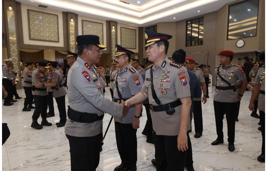 (117 Views) January 14, 2026 2:21 am | Published by pimred | No commentSurabaya – SuaraJatim.News – Kapolda Jawa Timur menggelar upacara serah terima jabatan (sertijab) pejabat utama (PJU) dan sejumlah Kapolres di jajarannya. Kegiatan tersebut berlangsung di Gedung Mahameru Mapolda Jatim, Jalan Ahmad Yani, Surabaya. , Senin 12 Januari 2026.
