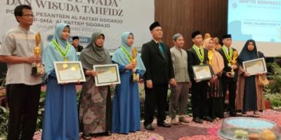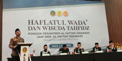 (1047 Views) June 5, 2023 8:22 am | Published by pimred | No commentSidoarjo – SuaraJatim.News – Pondok Pesantren Al Fattah mengadakan Kegiatan Akhir Tahun yaitu Haflatul Wada’ Dan Wisuda Tahfidz, untuk melepas santri yang telah Memenuhi Target Pendidikan dan Waktu Kelulusan baik jenjang Wustha atau SMP maupun Ula atau SMA.