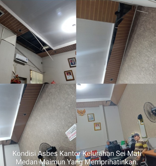 “Biawak pun pernah jatuh dari Asbes Bang, pas di dalam Ruangan Bu Lurah, sudah parah kali kondisinya, sudah seharusnya segera di renovasi” sebut Dedi.