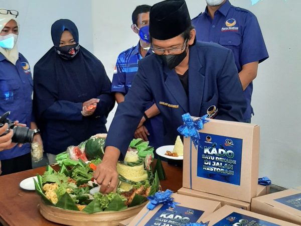 Di ikuti Pemotongan tumpeng secara simbolis oleh Ketua DPD P. Nasdem Magetan, dan Mengikuti Live Streaming Puncak Peringatan Harlah dari DPP Partai Nasdem tahun 2021 secara virtual.