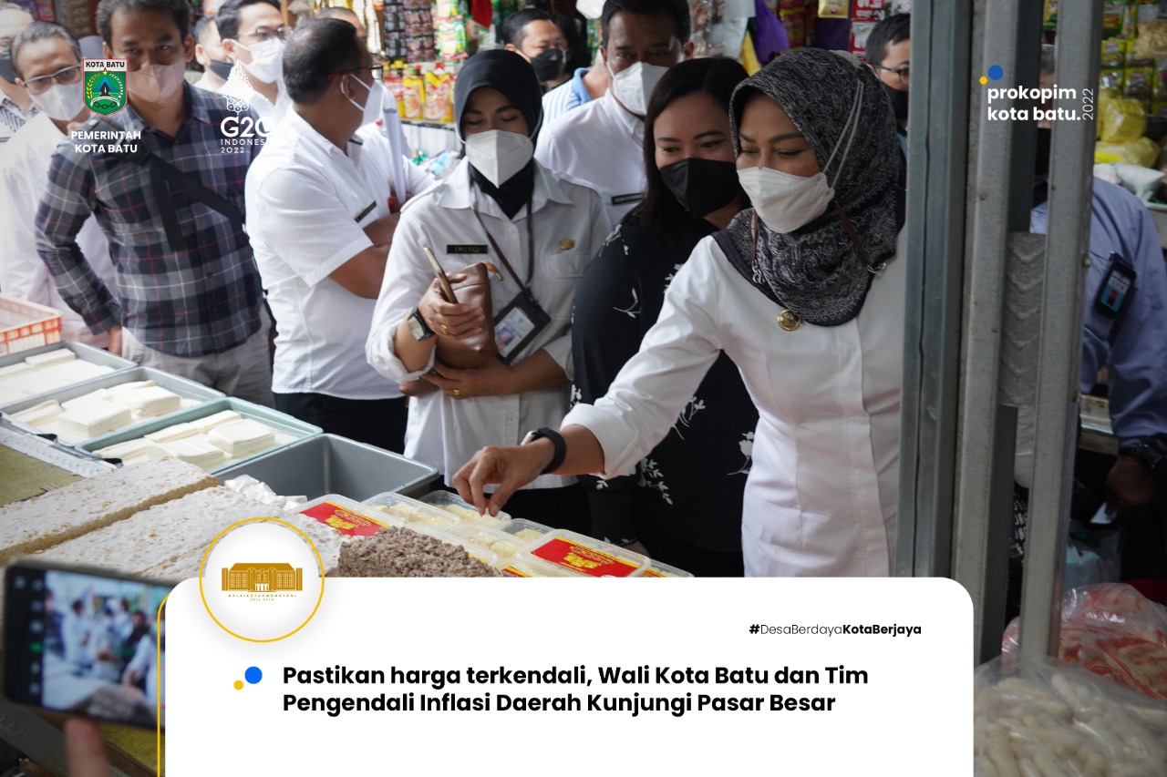 (912 Views) March 30, 2022 6:30 pm | Published by pimred | No commentBatu, Malang – SuaraJatim.News [Prokopim] Wali Kota Batu, Dra Hj Dewanti Rumpoko, bersama dengan Wakil Wali Kota Batu, H Punjul Santoso, dan Tim Pengendali Inflasi Daerah (TPID), melaksanakan kunjungan ke Pasar Besar Relokasi yang ada di kawasan Stadion Brantas, Rabu (30/3).