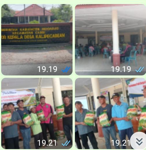 Dalam pelaksanaan program Pemerintah Penyerahan Benih Padi, tempatnya di balai Desa Kalipecabean Jl.Kedung Peluk no.16. RT.05. RW.02 Desa Kalipecabean – Candi Kabupaten Sidoarjo.