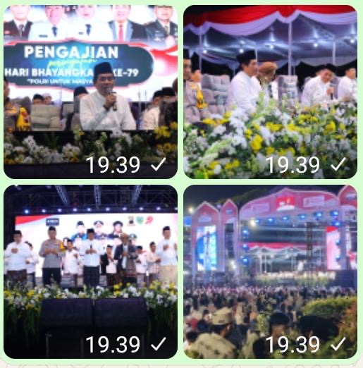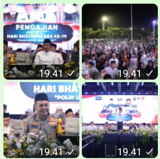 Momen Kebersamaan yang Penuh Berkah. Pengajian umum ini menjadi salah satu rangkaian kegiatan Polres Kudus dalam rangka Hari Bhayangkara ke-79. Kegiatan tersebut tidak hanya mempererat hubungan emosional antara Polri dan masyarakat, namun juga menjadi ruang untuk menanamkan nilai keimanan, ke Bangsaan, dan kedamaian. Dengan suasana religius dan kebersamaan yang terasa hangat, Alun-Alun Simpang 7 Kudus malam itu berubah menjadi lautan manusia yang bersatu dalam doa dan harapan untuk bangsa yang damai dan Polri yang amanah.
