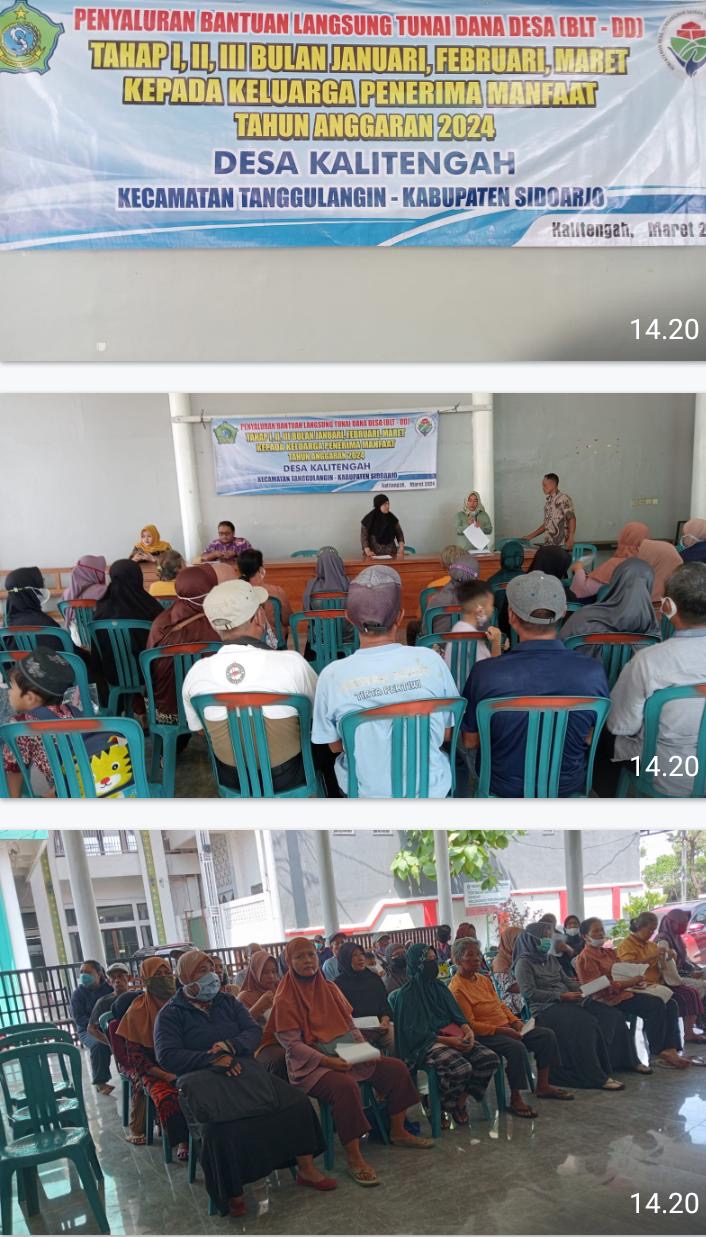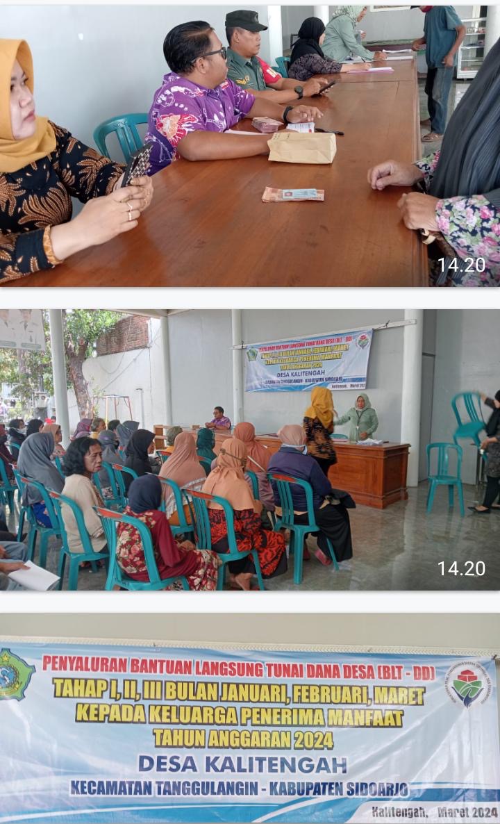 (938 Views) March 27, 2024 3:02 am | Published by pimred | No commentSidoarjo – SuaraJatim.News – Pemerintah Desa KaliTengah Kecamatan Tanggulangin Kabupaten Sidoarjo, telah melaksanakan penyaluran bantuan langsung tunai BLT Dana Desa Tahap 1~2 dan 3, pada bulan Januari~Februari~Maret Tahun anggaran 2024. kepada Keluarga Penerima manfaat. Selasa 26 Maret 2024 mulai pukul 10.00 Wib sampai dengan selesai.