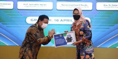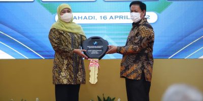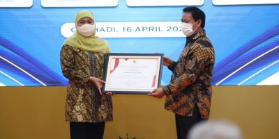 Penyerahan disaksikan oleh Gubernur Jawa Timur, Khofifah Indar Parawansa, dalam kegiatan Pengingkatkan Indeks Literasi Masyarakat Untuk Kesejahteraan, di Gedung Negara Grahadi, Surabaya, Sabtu (16/4) bersama beberapa kepala daerah lain.
