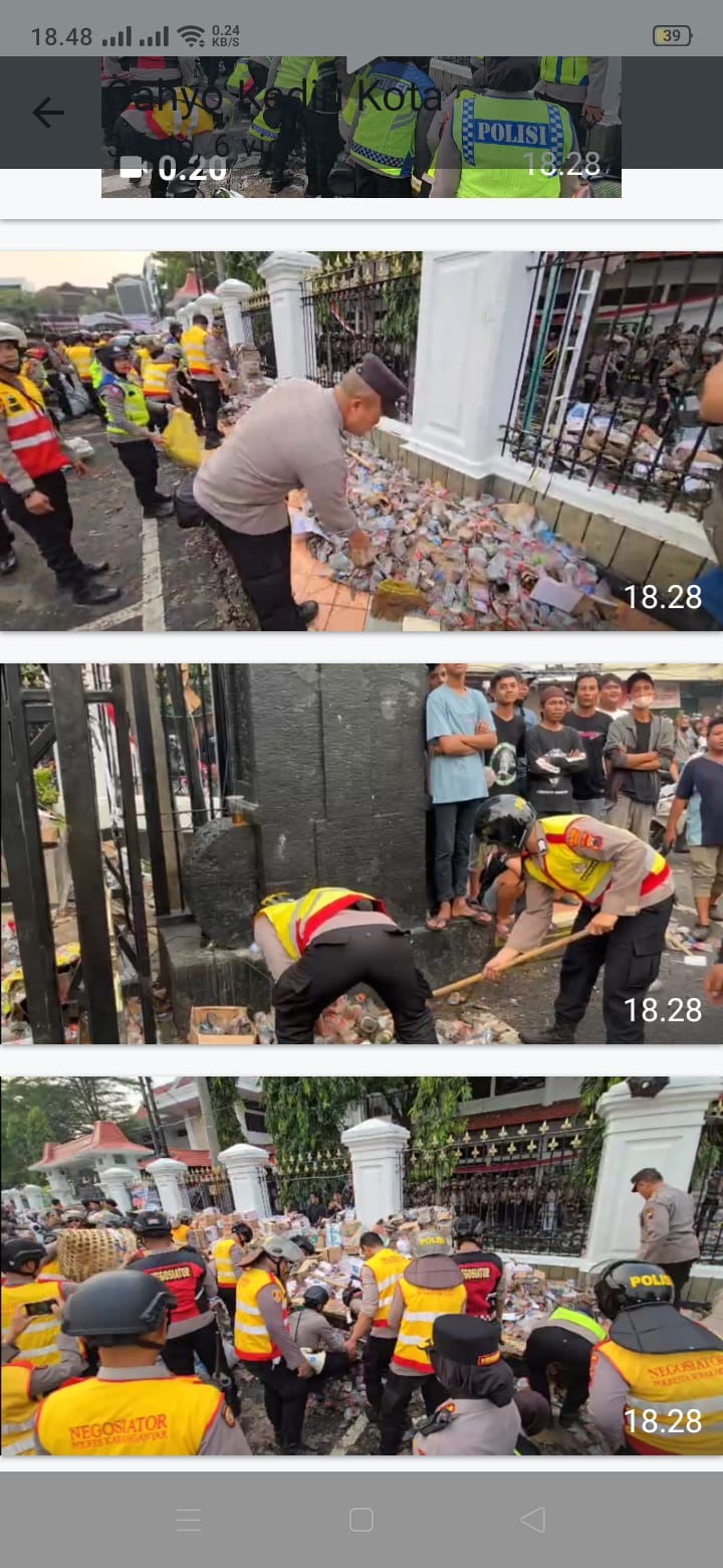 Kegiatan ini dilakukan sebagai wujud kepedulian menjaga kebersihan dan upaya memulihkan kembali situasi pasca aksi unjuk rasa. Dalam pemandangan tersebut tampak puluhan anggota polisi, termasuk sejumlah polwan, memunguti gelas plastik, botol air mineral, potongan kayu, dan batu yang tercecer di halaman kantor Bupati. Meski telah seharian melaksanakan pengamanan, para personel tetap berinisiatif untuk memastikan area tetap bersih.