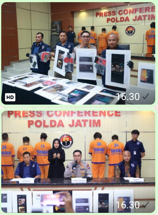 (290 Views) June 14, 2025 3:39 pm | Published by pimred | No commentSurabaya – SuaraJatim.News – Direktorat Reserse Siber (Ditressiber) Polda Jawa Timur berhasil mengungkap group WhatsApp (WA) “INFO VID” yang digunakan untuk menyebarkan konten pornografi dan mencari pasangan sesama jenis (Gay). Dari pengungkapan kasus ini Ditressiber Polda Jatim mengamankan 4 Orang tersangka. Mereka adalah MI (21) warga Gubeng Surabaya, NZ (24) warga Tambaksari Surabaya, FS (44) warga Dukuh Pakis Surabaya dan S (66) warga Jombang. Hal itu seperti disampaikan oleh Kabid Humas Polda Jatim, Kombes Pol Jules Abraham Abast, dalam keterangannya saat konferensi pers di Gedung Bidhumas Polda Jatim, Jumat 13 Juni 2025. “Pengungkapan kasus ini berawal dari viralnya di media sosial (FB) terkait adanya group Gay Tuban dan Lamongan, Tuban dan Bojonegoro,” ungkap Kombes Abast.