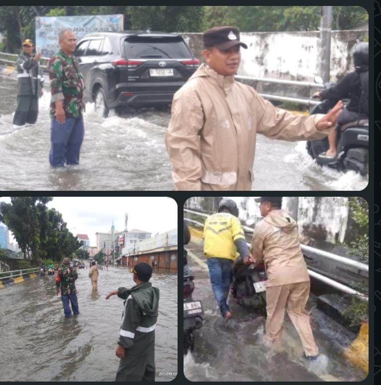 Kegiatan tersebut berlangsung di Jalan Satria Raya RT 04 RW 04, Kelurahan Jelambar, di mana genangan air setinggi kurang lebih 10 cm sempat mengganggu arus lalu lintas kendaraan roda dua dan roda empat dari arah Grogol menuju Jalan Latumenten Raya. Meski demikian, arus lalu lintas masih dapat dilalui melalui satu jalur yang tetap dibuka. Bhabinkamtibmas Kelurahan Jelambar AIPDA Fitrah Amirullah bersama 3 Pilar tidak hanya melakukan pemantauan, namun juga aktif membantu pengaturan arus lalu lintas serta menolong pengendara sepeda motor yang mengalami mogok saat melintasi genangan air. Di lokasi, kegiatan pemompaan air masih terus dilakukan guna mempercepat surutnya genangan.