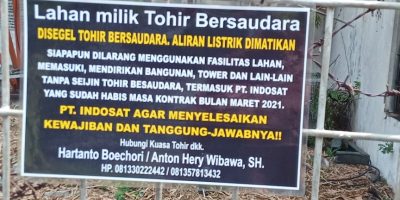 Bisa juga kata dia, jika masih berlarut larut tanpa ada perhatian serius dari PT Indosat Tbk, Keluarga Mochammad Tohir akan berlanjut menempuh jalur perdata. “Wanprestasi, ini kan tanah milik keluarga, ya kita akan persiapkan gugatan perdata,” tuturnya.