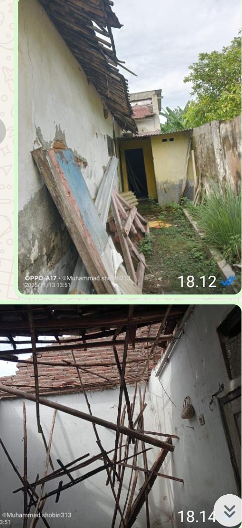 (340 Views) November 15, 2025 2:48 pm | Published by pimred | No commentSidoarjo – SuaraJatim.News – Hujan deras pada hari Rabu 12 Nopember 2025, Merobohkan rumah Ibu Sumarti yang tinggal bersama putunya, suaminya sudah meninggal. Ketika awak media kerumah Ibu Sumarti, tanpa rumah atap yang roboh menimpah kasur dan bangunan lainnya. “Sepertinya rumah tersebut sudah kelihatan rapuh dimakan rayap Ketika awak media menanyakan, kepada Ibu Sumarti ? tinggal bersama siapa dirumah ini,” dijawab hanya bersama putunya.