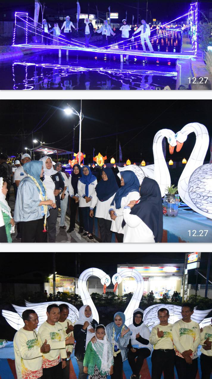 Penggagas Program Sido Resik Ketua TP-PKK Kabupaten Sidoarjo Hj. Sa’adah Ahmad Muhdlor S.Hum takjub dengan lampion-lampion diatas Sungai Mangetan Kanal.
