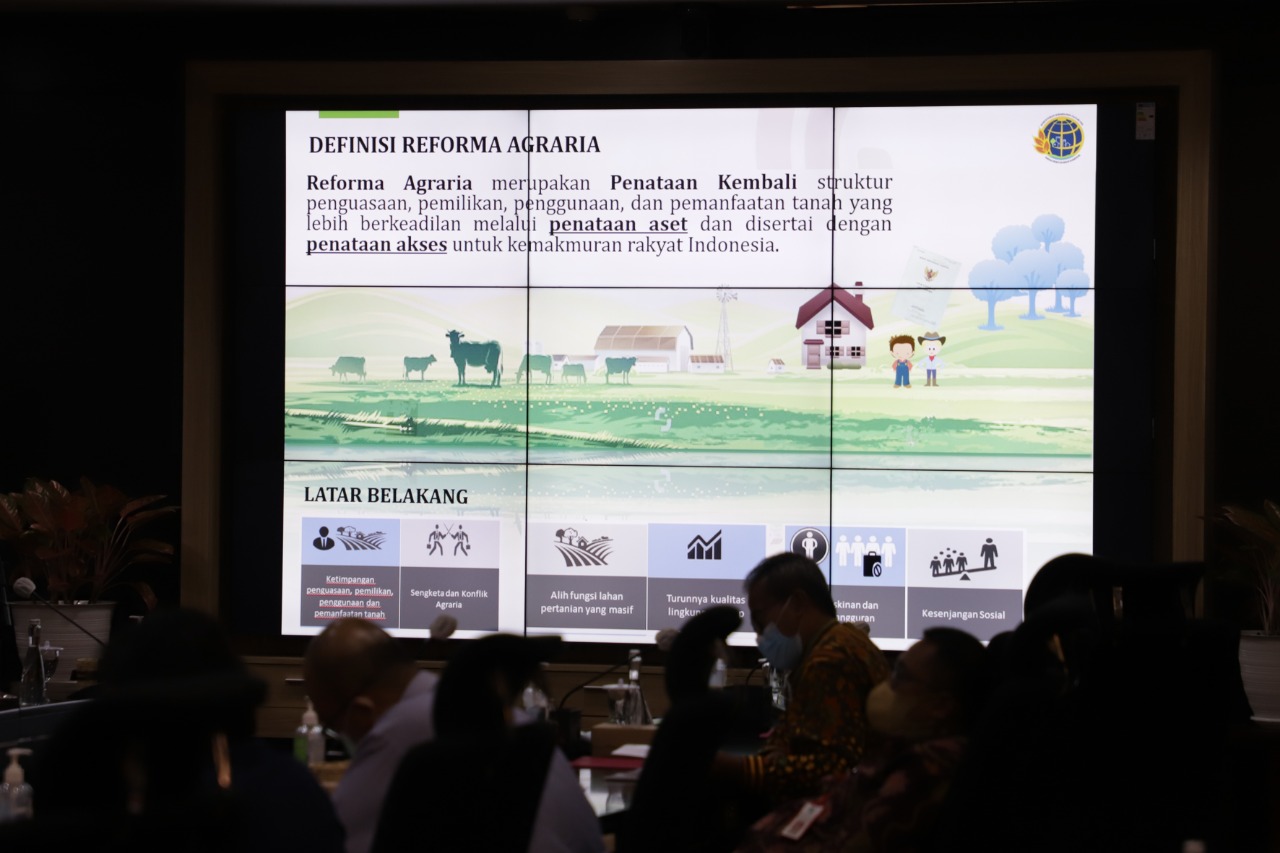 Reforma Agraria merupakan Penataan Kembali struktur penguasaan, pemilikan penggunaan dan pemanfaatan tanah yang lebih berkeadilan melalui penataan aset dan disertai dengan penataan akses untuk kemakmuran rakyat Indonesia.